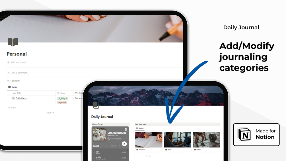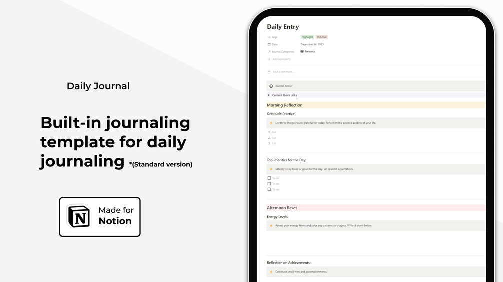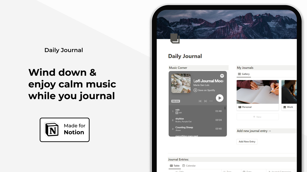 - No limit on Entries: Enjoy the freedom to add countless journal entries with your Notion account.
