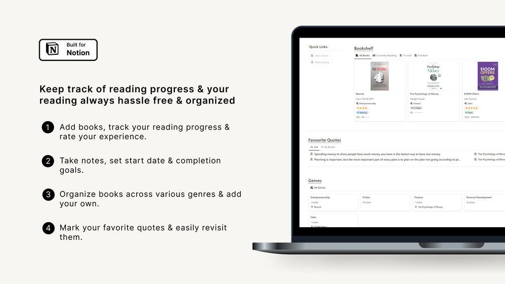 Keep track of your reading progress, rate, organize, manage books with ease & save you 3x time & effort.
