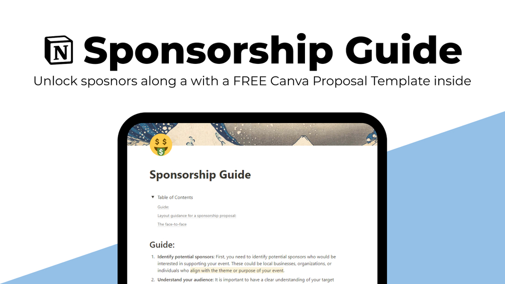 This comprehensive guide is completely FREE and will equip you with all the necessary process and knowledge to identify your target audience, potential sponsors, and pitch to them effectively.